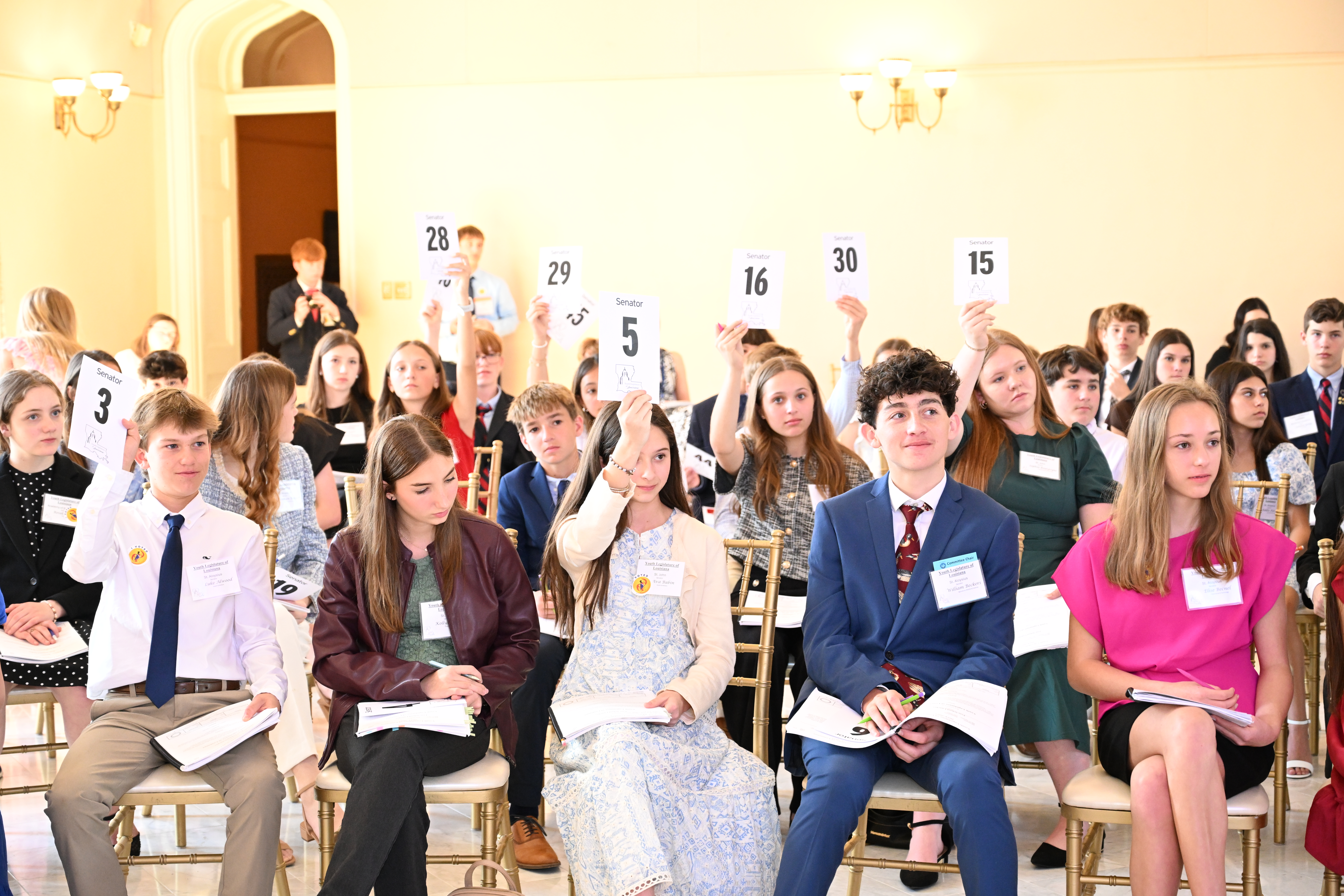 Each year, over 1,700 middle school students from diverse school settings across 13–15 parishes take part in one of eight two-day mock legislative sessions at the Louisiana Old State Capitol, stepping into roles that reflect the real structure of the Louisiana State Legislature—including legislators, committee chairs, media, and executive offices.