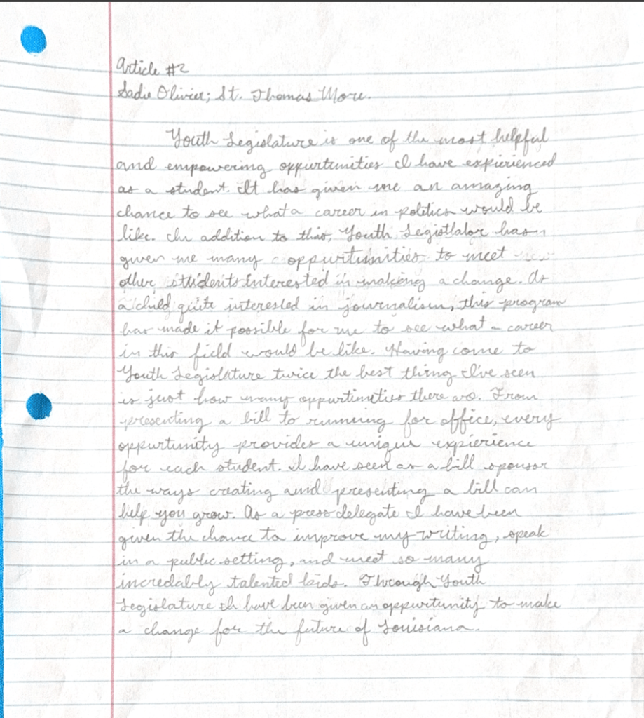 Through Youth Legislature, I’ve been given the opportunity to make a real impact on the future of Louisiana.